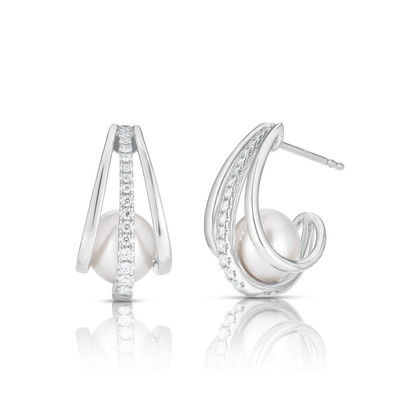 A fresh take on pearls — sleek curves of gold, a line of diamonds, and a luminous center that steals the spotlight. Dress them up, wear them daily, just don’t call them traditional. - Made in 14k gold - Available in white, yellow, or rose...
