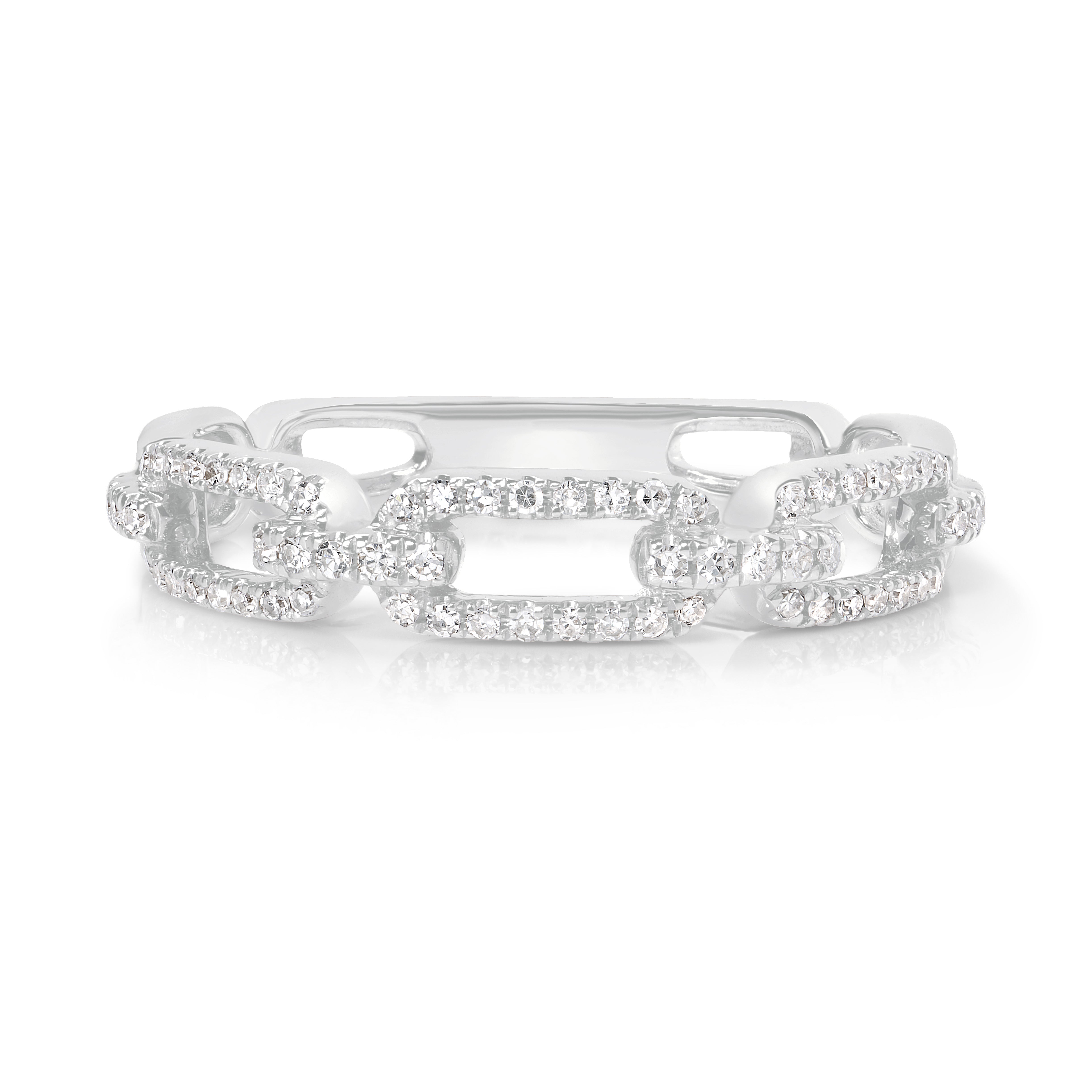 Delicate but bold. This petite long link diamond ring brings edge to elegance with its polished gold links and pavé sparkle. A fresh twist on the classic chain ring — sleek, stackable, and made to shine every day.