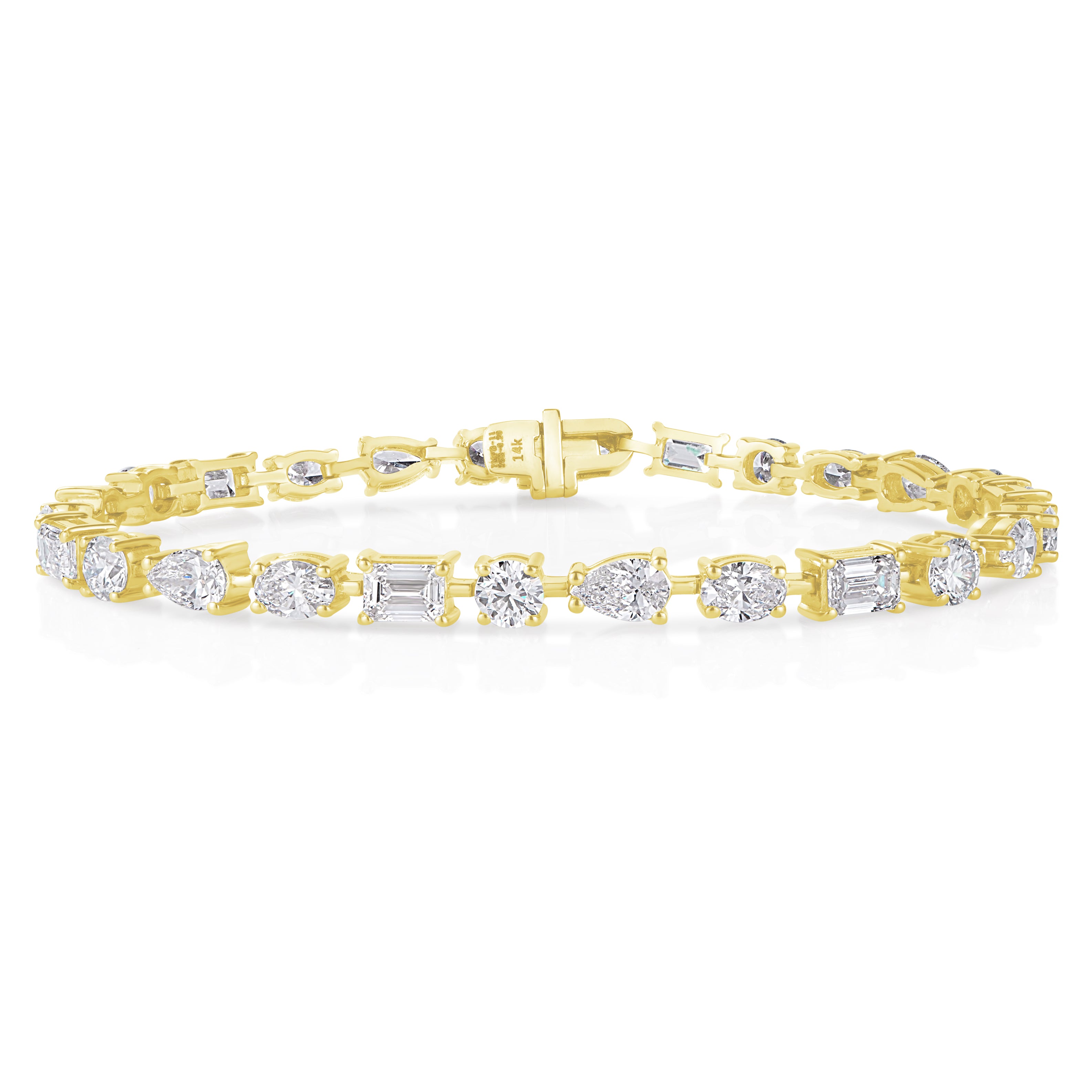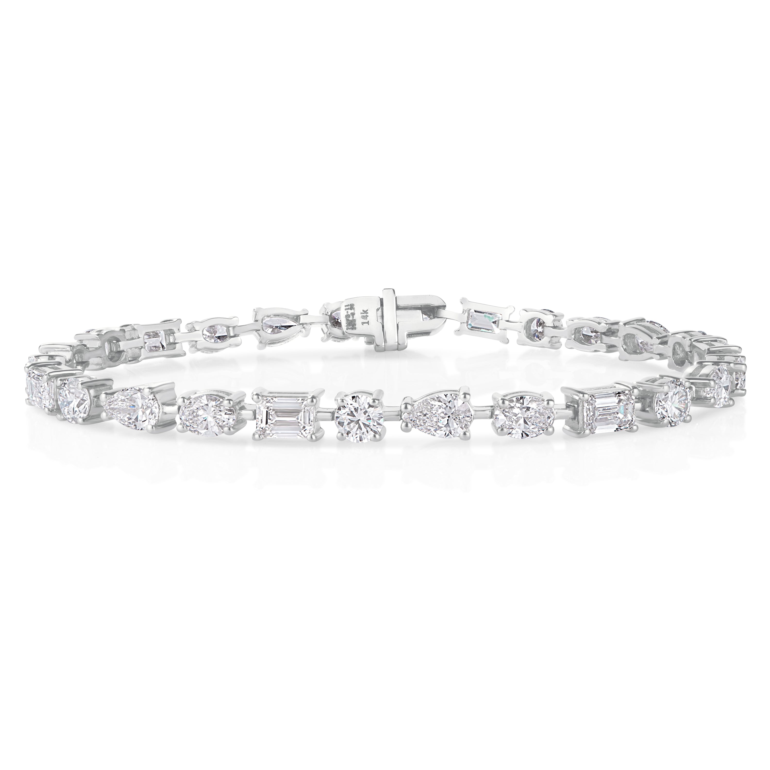 Round, pear, oval, emerald — every shape gets its moment. This east-west diamond tennis bracelet brings movement, texture, and major sparkle to your wrist. A modern twist on a classic, designed for the woman who knows subtle isn’t her style.