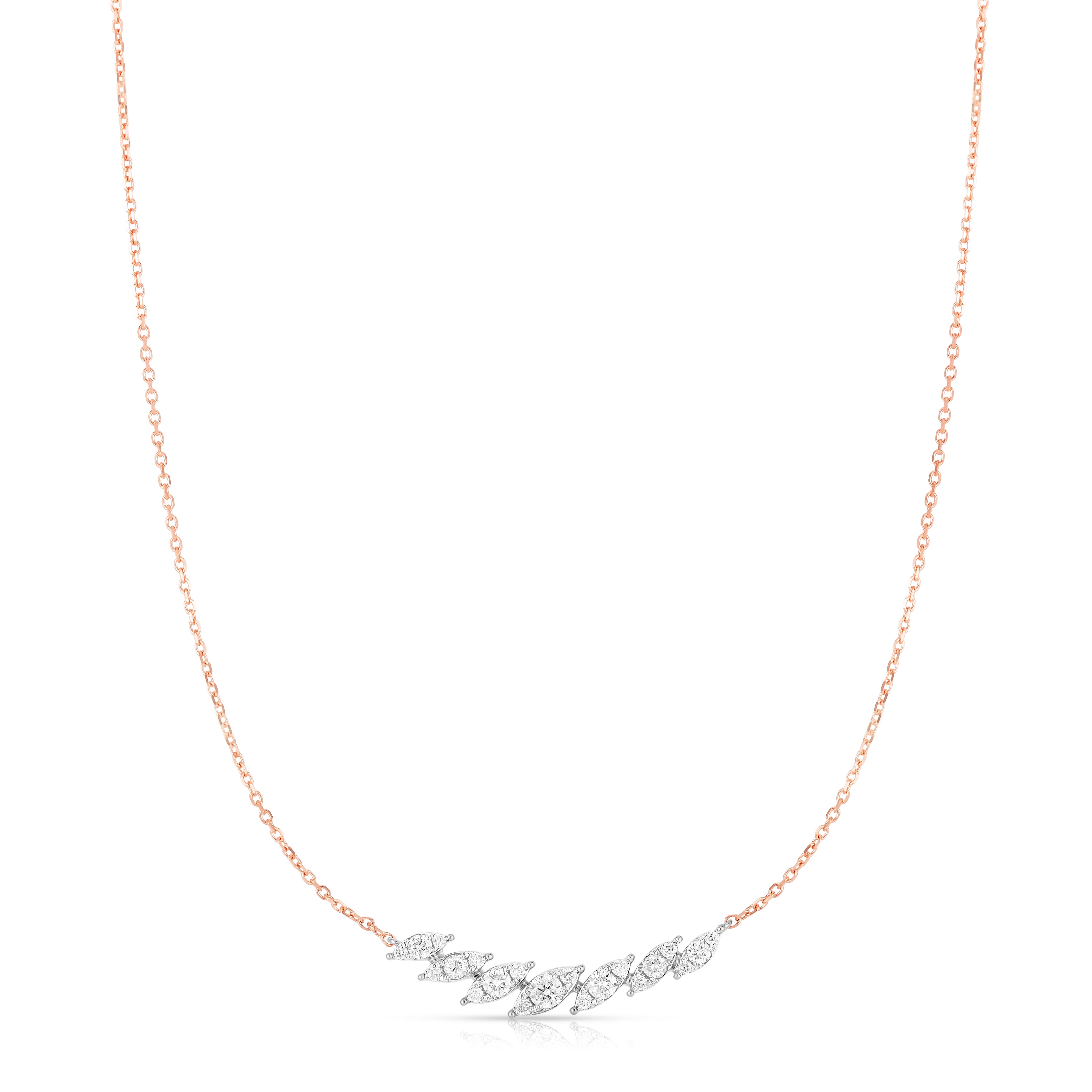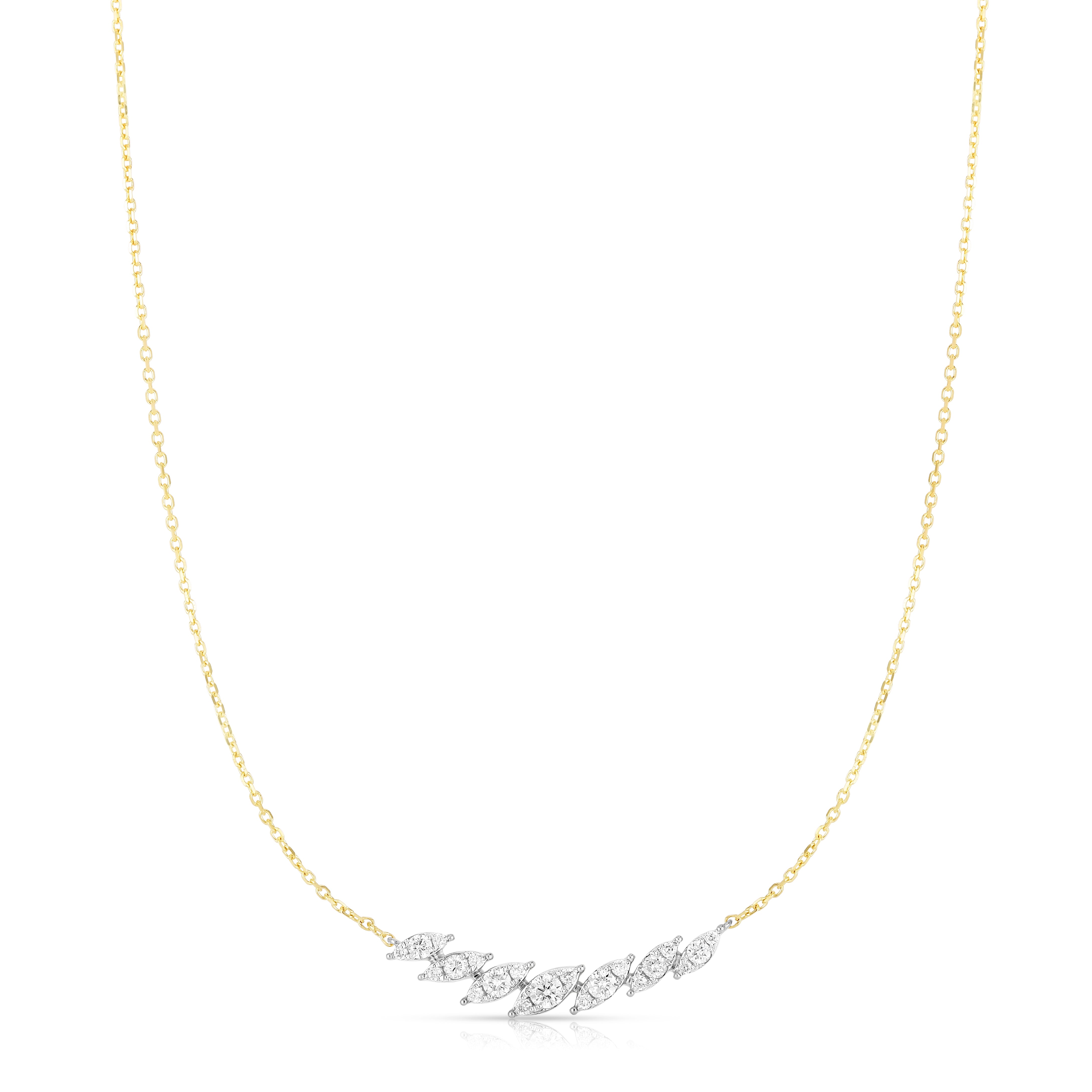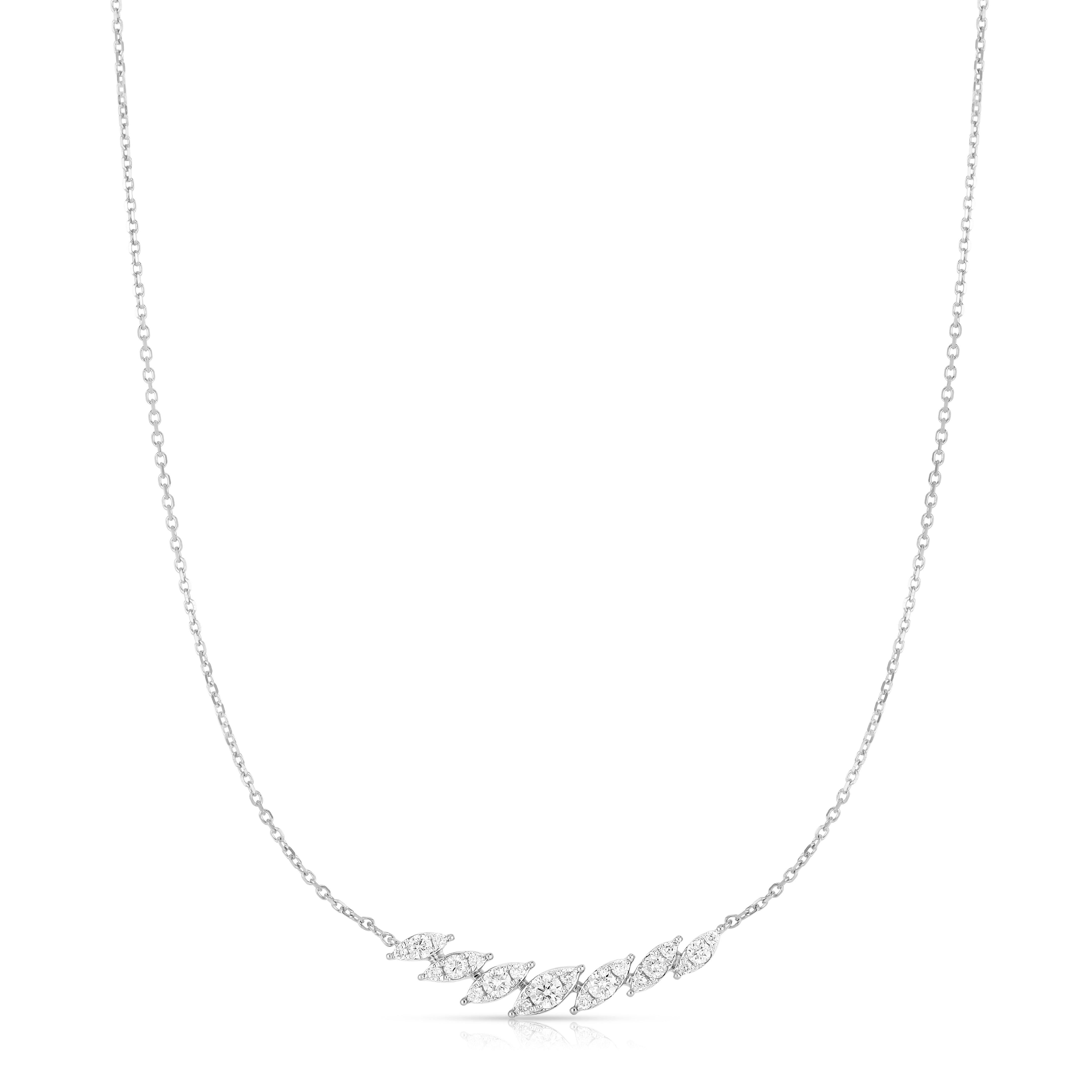 We call it the party trick of diamond necklaces: This modern statement makes its own rules with 3-stone settings that create the illusion of marquise-cut diamonds. Each is tilted, evoking a visual of dominos tipping (if you played dominos with stunning white diamonds, that is). A delicate chain and layer-or-don't styling make this a perfect touch to top off your look.