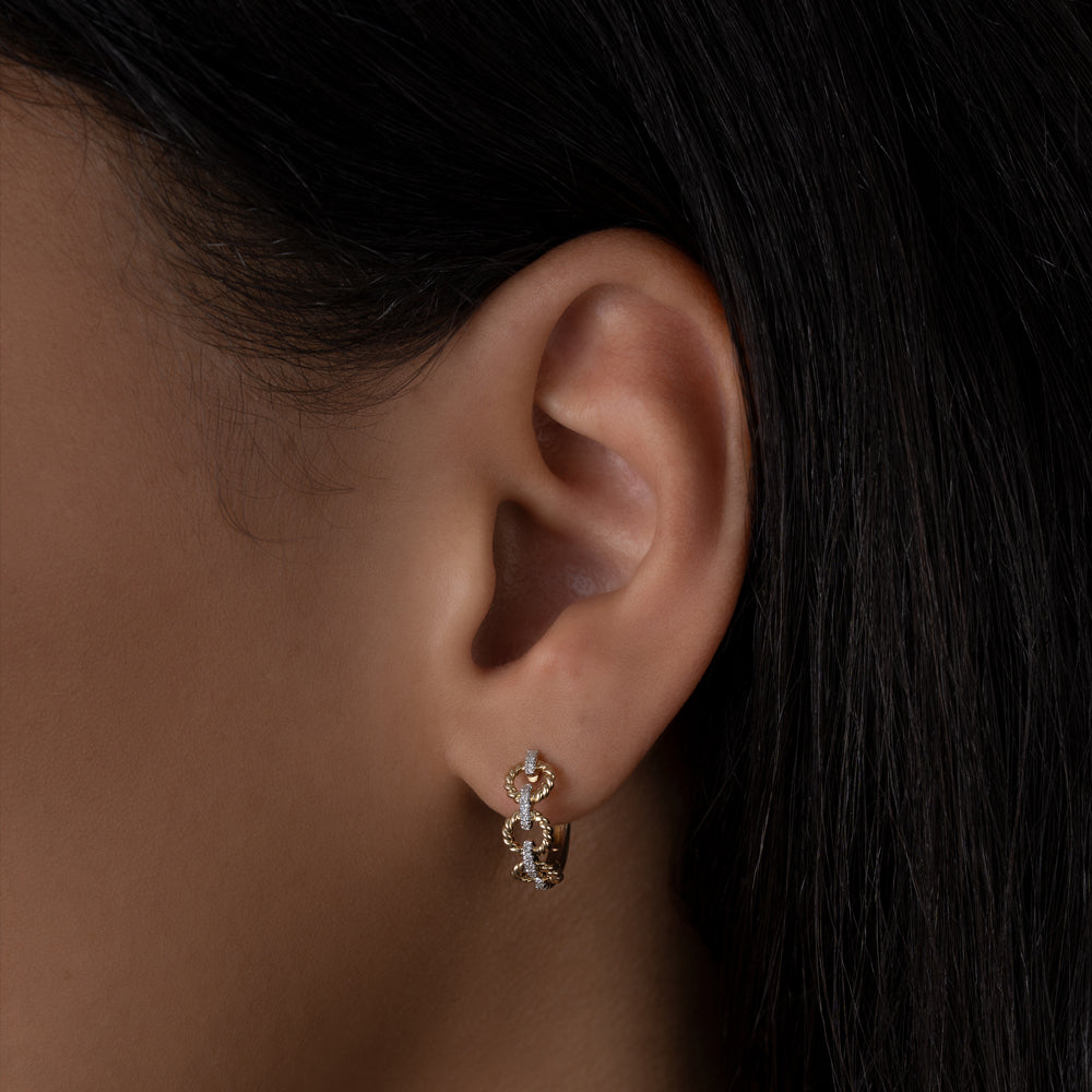 Delicate rope-detailed links meet fine diamond connectors in a lightweight huggie that feels just right. Soft structure, subtle sparkle, and easy polish in one go.
