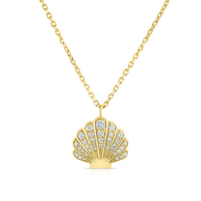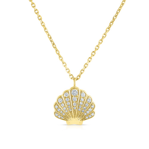 This shell necklace is like a little slice of the ocean you can wear every day. With pavé diamonds shimmering like sunlit waves, it’s perfect for bringing a touch of seaside glamour to your look. Whether you’re beach-bound or city strolling, this piece is pure mermaid magic.