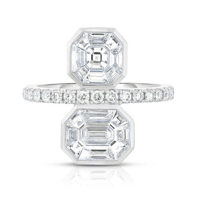 Because your collection could use a triple-threat of sparkle, glam, and playfulness, we designed a ring that pulls out all the stops. From rows of gleaming textured gold to a shimmering cluster of baguette diamonds—which create an epic emerald-cut illusion stone, front and center—this special piece is perfect for day-to-night head-turning.