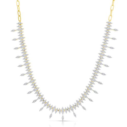 Memorable, glamorous, edgy? Yes, yes and yes. If you're looking for a necklace that reflects your best qualities, this showstopping piece has it all (and then some). Three round diamonds are flawlessly set to create each marquise-cut stone illusion. In total, over 280 diamonds bring this dazzling piece to life.